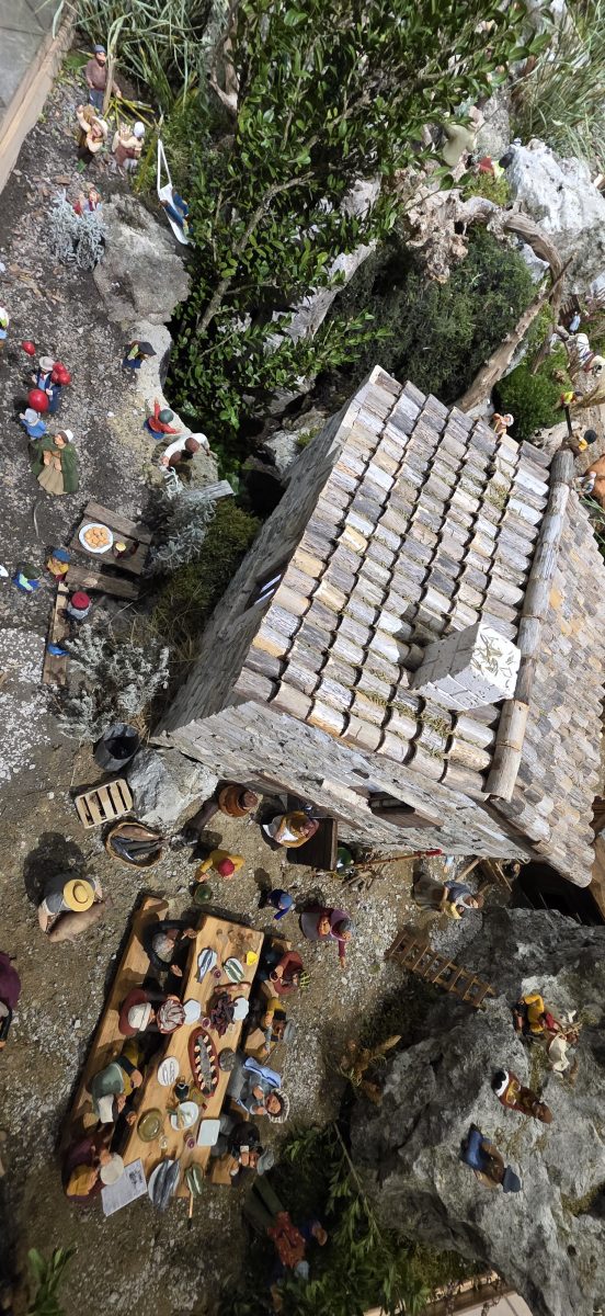 Autre ajout marquant : la reproduction du Moulin de Bès, un lieu cher au cœur de Grégory et de sa fille, où ils aiment flâner. Le site lui rappelle aussi des réveillons de son enfance : « On passait des Saint-Sylvestre à manger du poisson pêché le jour même, cuisiné par les anciens… C’étaient des fêtes mémorables. » La crèche devient ici un véritable carnet de mémoire familiale. Une œuvre qui raconte un village… et une vie.